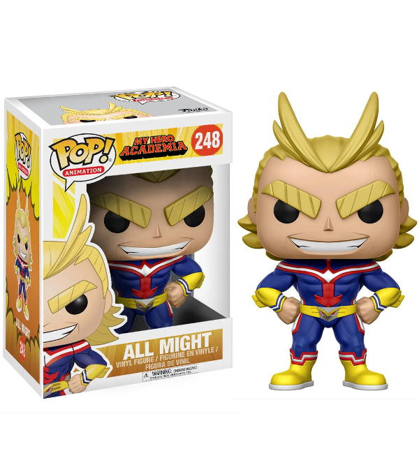 Funko POP! "Animation 248 My Hero Academia - All Might". La figura in vinile è alta circa 9 cm e viene fornita in una scatola con finestra.