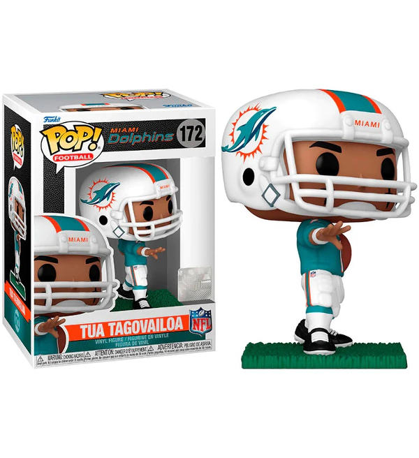 Funko POP! "Football 172 NFL - Tua Tagovailoa Miami Dolphins". La figura in vinile è alta circa 9 cm e viene fornita in una scatola con finestra.