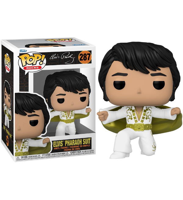 Funko POP! "Rocks 287 Elvis - Pharaoh Suit". La figura in vinile è alta circa 9 cm e viene fornita in una scatola con finestra.