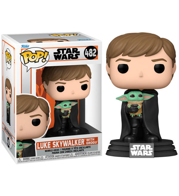 Funko POP! "Star Wars 482 - Luke Skywalker with Grogu". La figura in vinile è alta circa 9 cm e viene fornita in una scatola con finestra.