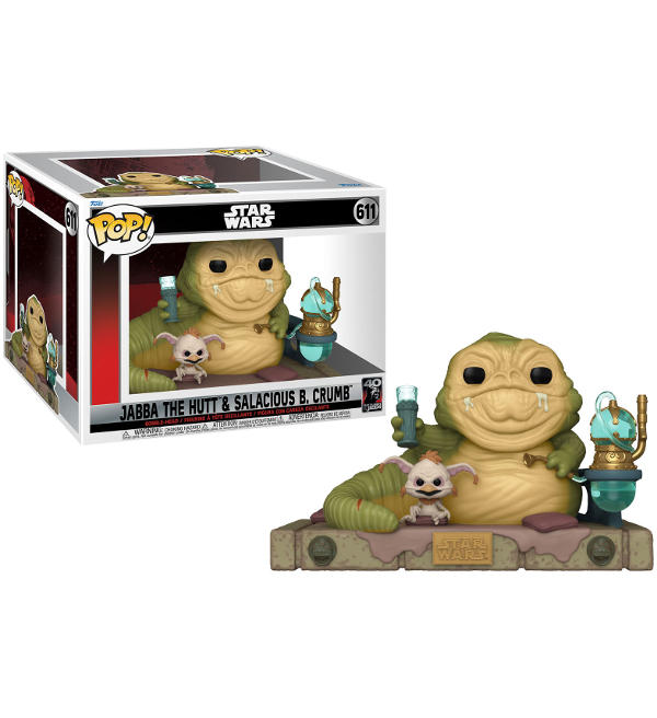 Funko POP! "Star Wars 611 - Jabba the Hutt & Salacious B. Crumb". La figura in vinile è alta circa 9 cm e viene fornita in una scatola con finestra.