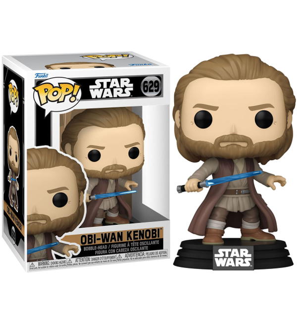 Funko POP! "Star Wars 629 Obi-Wan Kenobi - Obi-Wan Kenobi (Battle Pose)". La figura in vinile è alta circa 9 cm e viene fornita in una scatola con finestra.