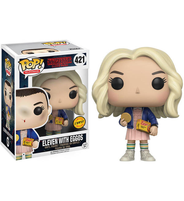 Funko POP! "Television 421 Stranger Things - Eleven with Eggos - Limited Chase Edition". La figura in vinile è alta circa 9 cm e viene fornita in una scatola con finestra.