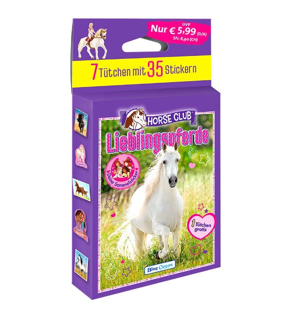 Blister da 7 bustine (=35 figurine) per la collezione di figurine "Horse Club Lieblingspferde".