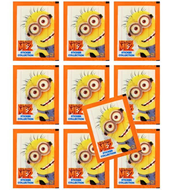 10 bustine per la collezione di figurine "Ich Einfach unverbesserlich 2". Ogni bustina contiene 5 adesivi.