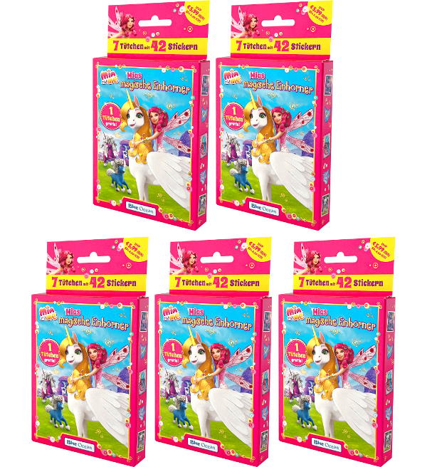 5 x Eco-Blister con un totale di 210 figurine per la collezione di figurine "Mia and me - Mias Magische Einhörner (2023)".