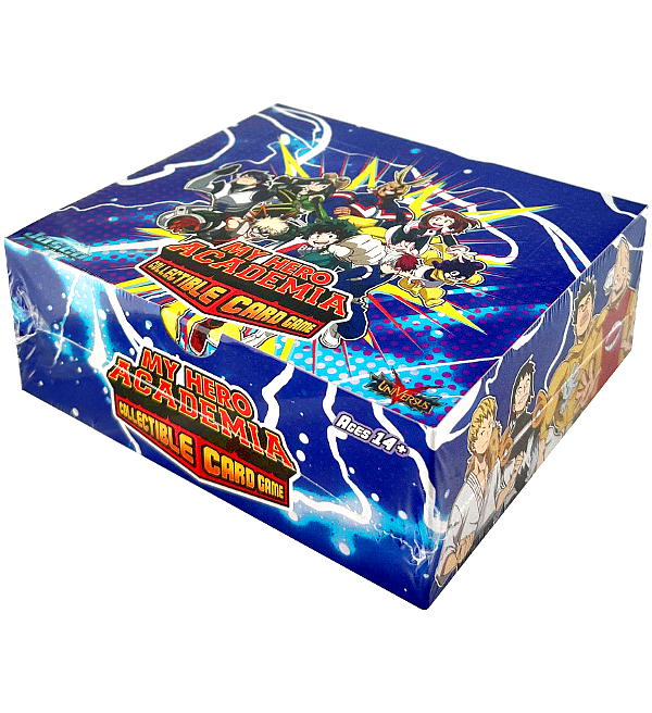 Scatola da 24 bustine della collezione "My Hero Academia Collectible Card Game - Series 01". Ogni bustina contiene 10 cards. La box contiene in totale 240 cards. La scatola è sigillata originale.