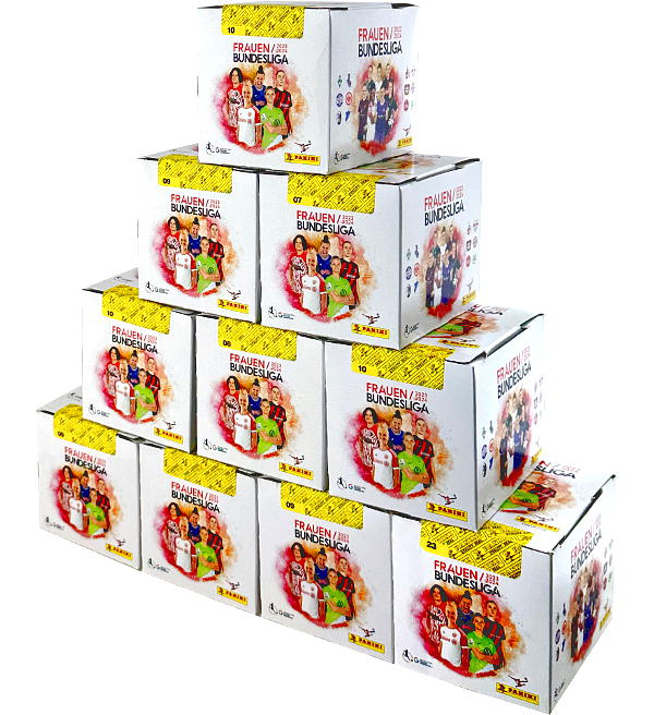 10 scatole (=360 bustine) per la collezione di figurine "Panini Bundesliga Femminile 2023-2024". Ogni bustina contiene 6 sticker.
