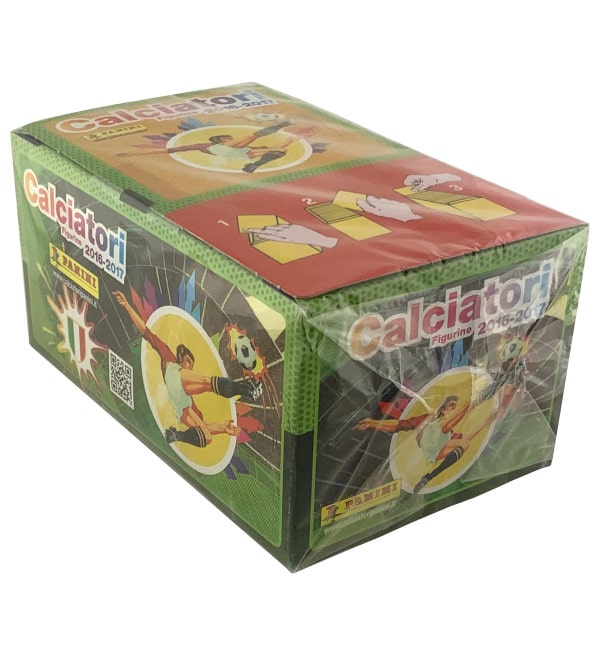 Scatola da 100 bustine per la collezione di figurine "Panini Calciatori 2016 - 2017". Ogni bustina contiene 5 adesivi.
