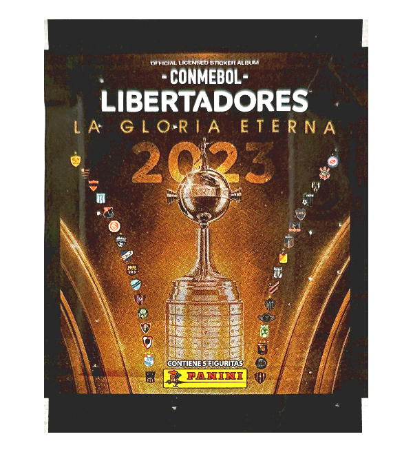 Bustina con 5 stickers (versione nera) della collezione figurine "Panini Conmebol Libertadores 2023".