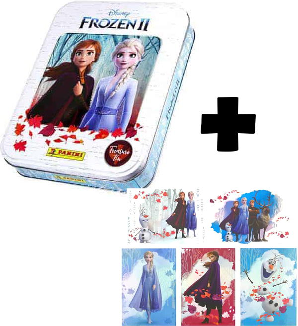 Una scatola di latta Mega XXXL VUOTA + XXL Card Set (#1-5) della serie di figurine e figurine "Panini Disney Frozen 2".