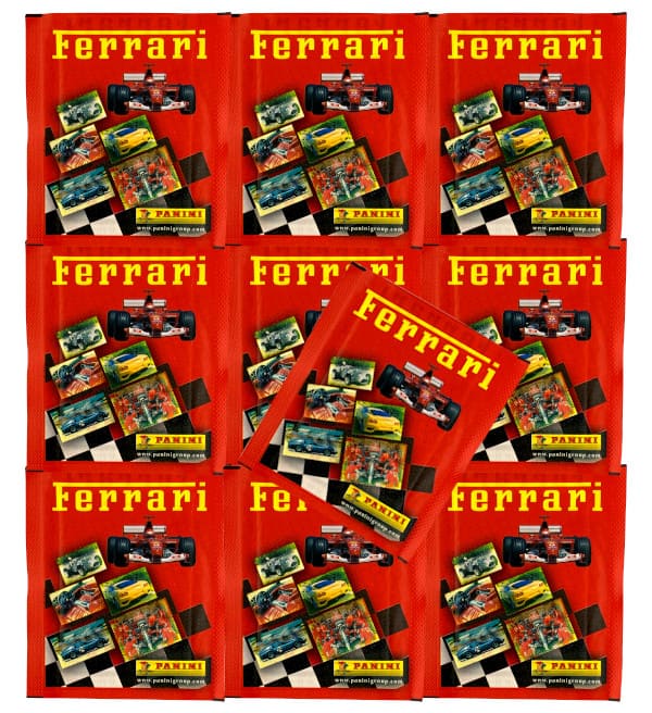 10 bustine (=50 figurine) per la collezione di figurine "Ferrari".