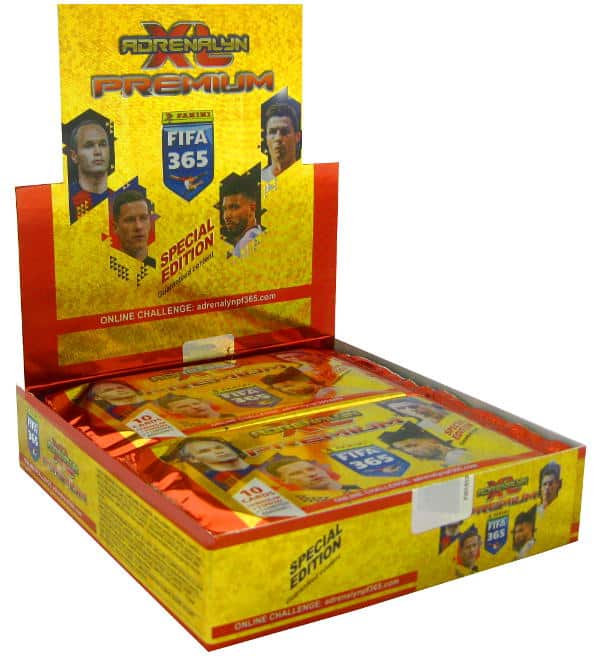 Scatola da 12 bustine Panini FIFA 365 2018 Adrenalyn XL Premium originale sigillato. Una bustina Panini FIFA 365 2018 Premium Edition contiene 10 cards: