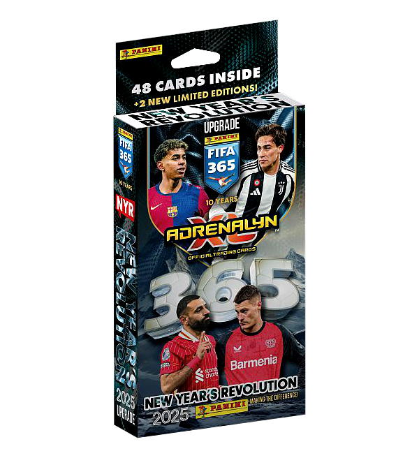 New Years Revolution Upgrade della collezione "Panini FIFA 365 2025 Adrenalyn XL" Trading Cards. Ogni box contiene:
