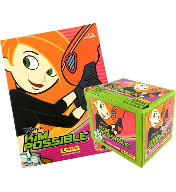 Album (versione tedesca) + scatola da 50 bustine per la collezione di figurine "Panini Kim Possible". Ogni bustina contiene 5 adesivi.