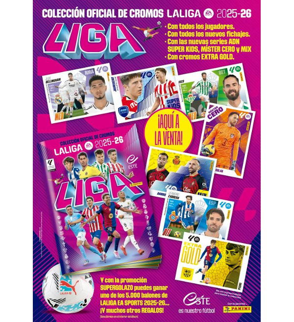 1 album + 2 Scatole (=100 Bustine) della collezione ufficiale di figurine "Panini LaLiga 2025/2026". Ogni bustina contiene 8 figurine da Primera División.
