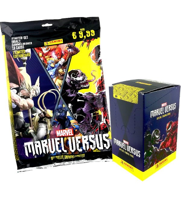 Starter Pack + Scatola della collezione Panini Marvel Versus Trading Cards 2022 con: