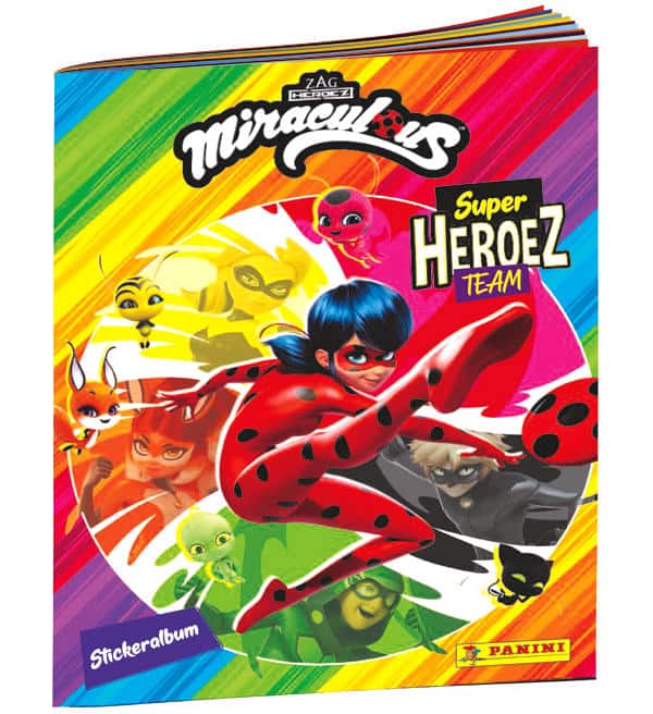 Album per la collezione ufficiale di figurine e cards Panini Miraculous "Super Heroez Team". L'album per questa serie ibrida ha spazio per 192 adesivi e 50 carte da collezione.