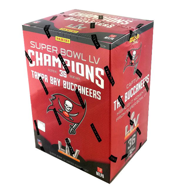 Panini NFL 2021 Super Bowl LV Champions Tampa Bay Buccaneers Box con 36 cards.