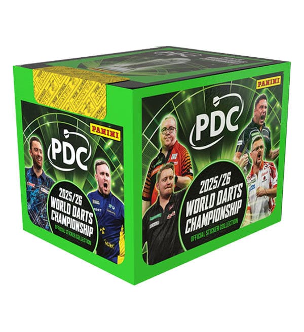 1 Scatola (=36 bustine) per la collezione di figurine "Panini PDC World Darts Championship 2025/26". Ogni bustina contiene 5 adesivi.