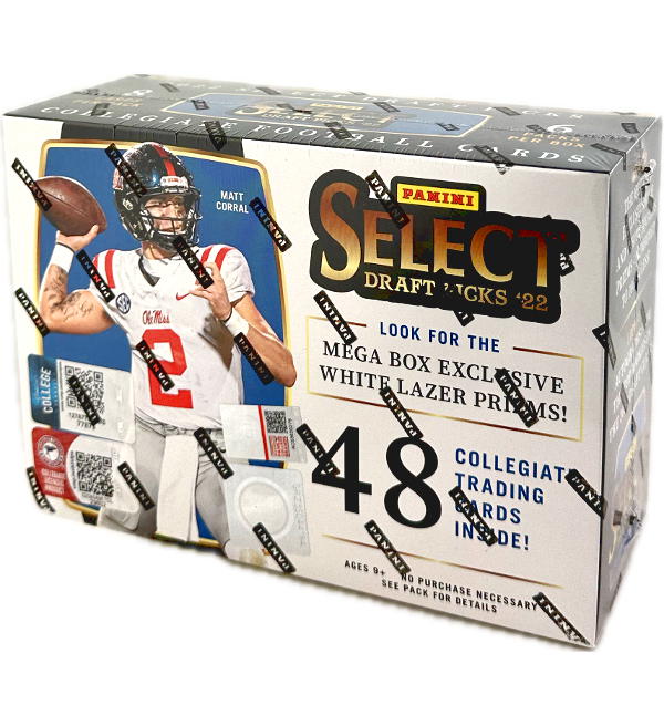 Mega Box da 6 bustine della collezione "Panini Select Draft Picks 2022" Trading Cards. Ogni bustina contiene 8 cards. La box contiene in totale 48 cards.