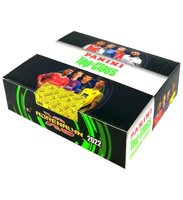 Scatola da 24 bustine della collezione "Panini Top Class Adrenalyn XL 2022" Trading Cards. Ogni bustina contiene 6 cards. La box contiene in totale 144 cards.