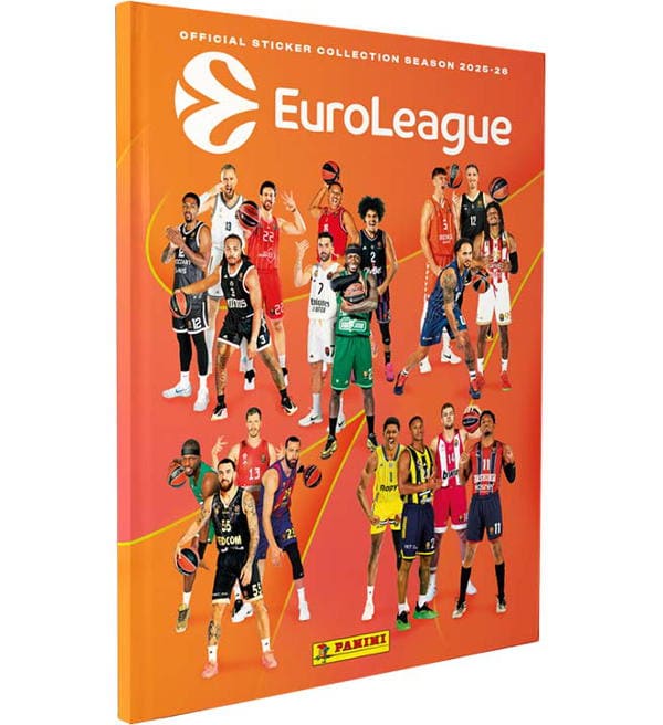 Album con copertina rigida (Hardcover Album) per la collezione figurine "Panini Turkish Airlines EuroLeague 2025-26". L'album ha 56 pagine e può essere incollato da 448 adesivi.