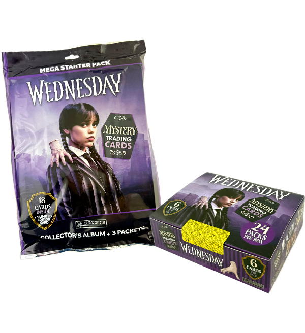Starterpack + scatola della collezione "Panini Wednesday Mystery" Trading Cards con: