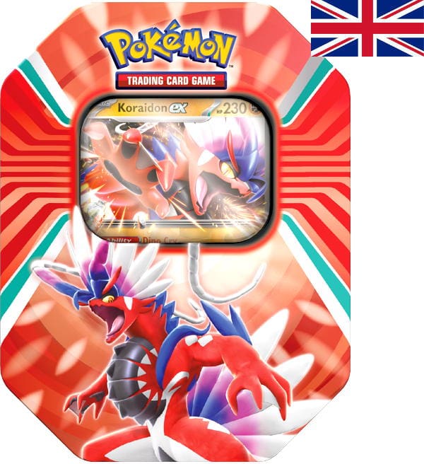 Pokemon Paldea Legends "Koraidon ex" Tin Box Summer 2023 della Pokemon Trading Card Game.