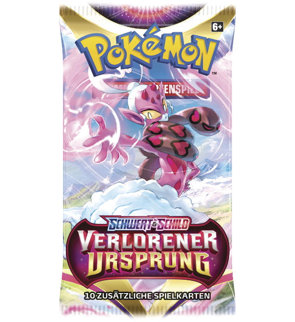 Scatola da 36 bustine (=360 cards) originale sigillata del set di estensione "Verlorener Ursprung" della serie Pokemon Schwert & Schild. Ogni bustina contiene 10 cards.