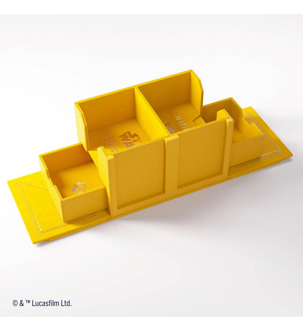 Il Double Deck Pod, un portamazzo premium con licenza ufficiale, è progettato specificamente per le esigenze dei giocatori di Star Wars™: Unlimited. Caratteristica unica: il Double Deck Pod include 2 custodie per carte scorrevoli con protezione UV aggiuntiva per conservare le carte leader. Grazie al posizionamento innovativo di queste carte, i mazzi conservati possono essere facilmente identificati senza aprire la scatola. Le custodie per slide card possono anche essere staccate e utilizzate durante il gioco. I mazzi e le basi si trovano su lati opposti, rendendo il Double Deck Pod la perfetta soluzione per 2 giocatori.