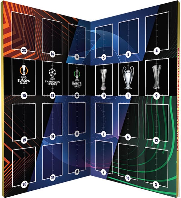 Il calendario dell'avvento della collezione "Topps Champions League Match Attax 2021/22" Trading Cards con 131 carteincluse le seguenti "Festive Surprise cards":