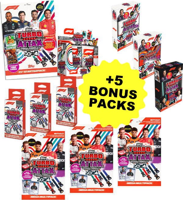 Mega-Bundle + 5 Bonus Packs della collezione Topps Formula 1 Turbo Attax 2024 con: