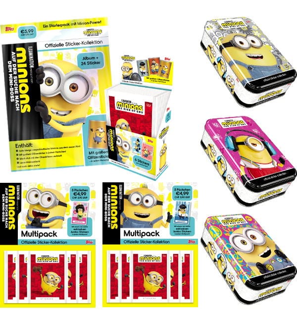 Mega-Bundle della collezione di figurine Topps "Minions - The Rise of Gru" 2022 con: