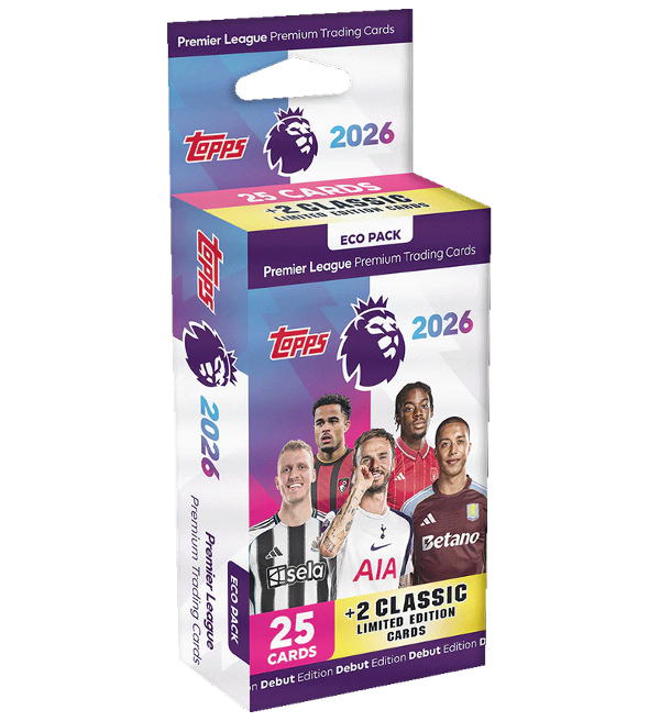 Eco Pack della collezione Topps Premier League 2026 Debut Edition Trading Cards con: