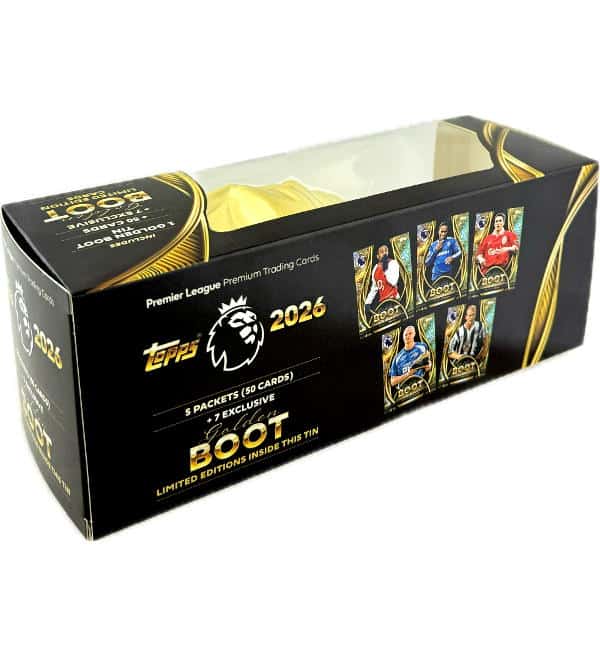 Golden Boot Tin della collezione Topps Premier League 2026 Debut Edition Trading Cards con:
