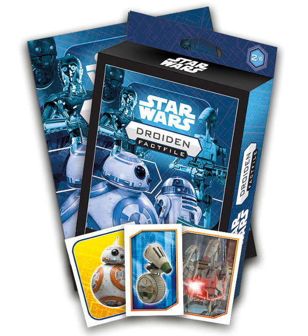 "Droids Set" per la collezione di adesivi di "Star Wars Factfiles" di Topps con il seguente contenuto: