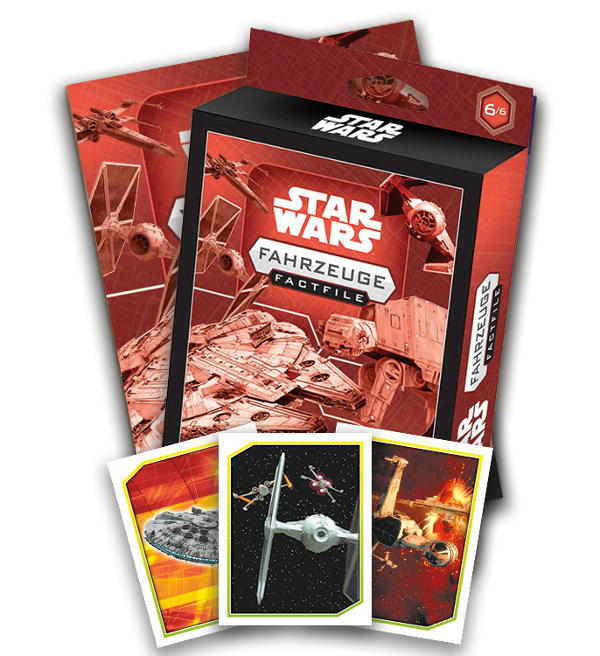 "Vehicles Set" per la collezione di adesivi di "Star Wars Factfiles" di Topps con il seguente contenuto: