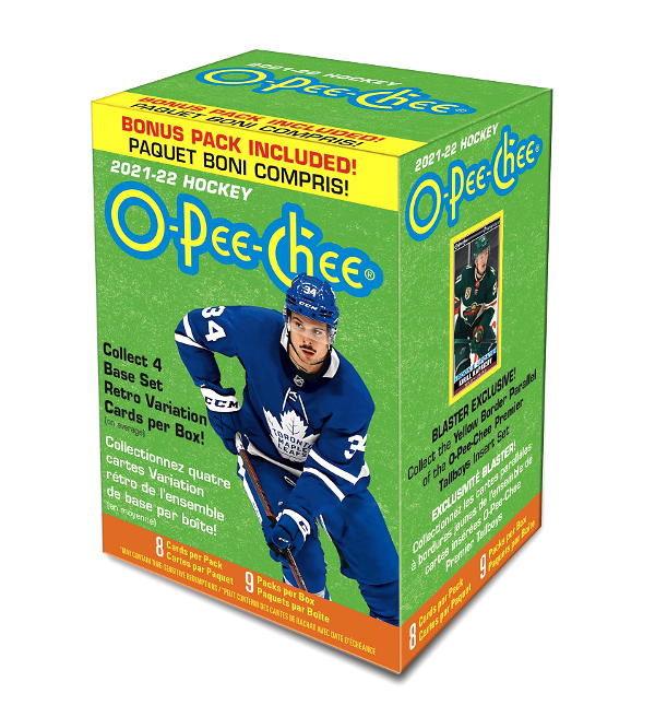 Blaster Box da 9 bustine della collezione "Upper Deck NHL 2021-22 Hockey - O-Pee-Chee" Trading Cards. Ogni bustina contiene 8 cards. La box contiene in totale 72 cards. La scatola è sigillata originale.