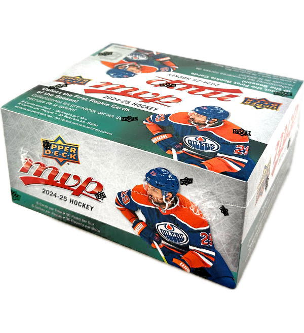 Scatola da 36 bustine della collezione "Upper Deck NHL 2024-25 MVP Hockey" Trading Cards. Ogni bustina contiene 6 cards. La box contiene in totale 216 cards. La scatola è sigillata originale.